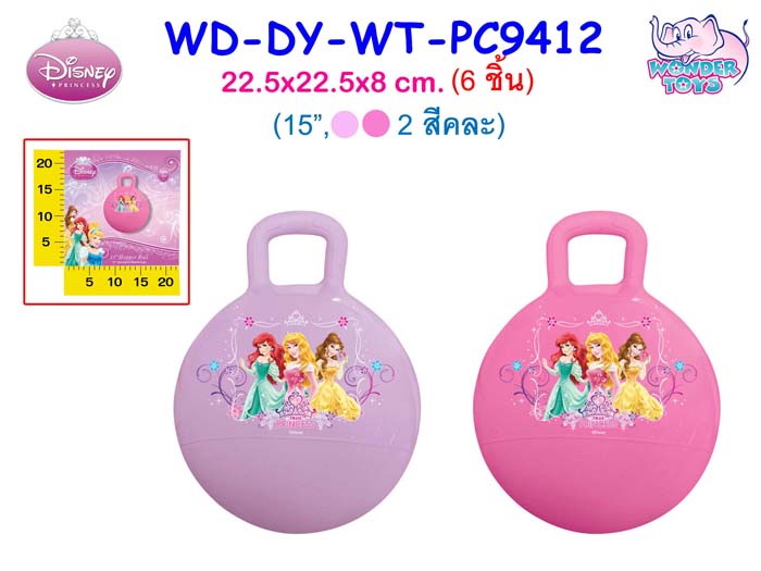 15" Disney Princesses Hopper Ball 22.5x22.5x8 cm. 2 Colors Asstd. 6 Pcs. Package Color Box