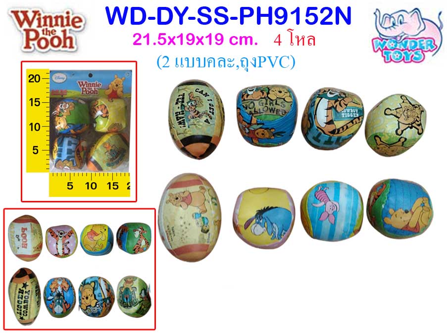 Winnie the Pooh Soft Sewn Ball 21.5 x 19 x 19 cm. 2 Styles Asstd. Package PVC Bag 4 Doz