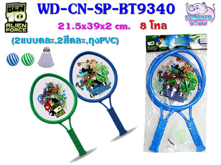 Ben 10 AF Tennis Racket Set 21.5x39x2 cm. 3 Styles Asstd. 2 Colors Asstd. 8 Doz. Package PVC Bag