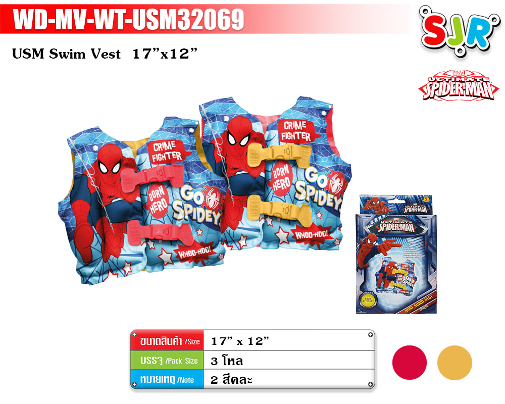 17"x12" Ultimate Spider-Man Swim Vest 19x14x3.3 cm. 2 Color Asstd. 3 Doz. Package Color Box