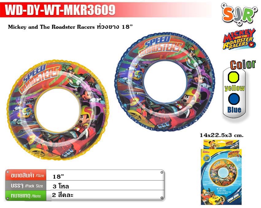 18" Mickey Racer Swim Ring 46 cm. 3 Doz. 2 Colors Asstd.