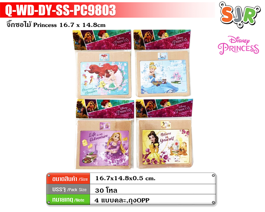 Disney Princess Wooden Puzzle Toys 16.7x14.8x0.5 cm. 30 Doz. 4 Styles Asstd.