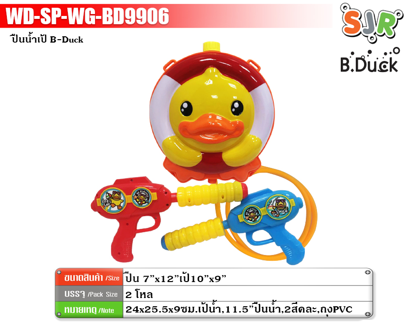 B.Duck Water Backpack 24x25.5x9cm. 2 Doz. 2 Colors Asstd.