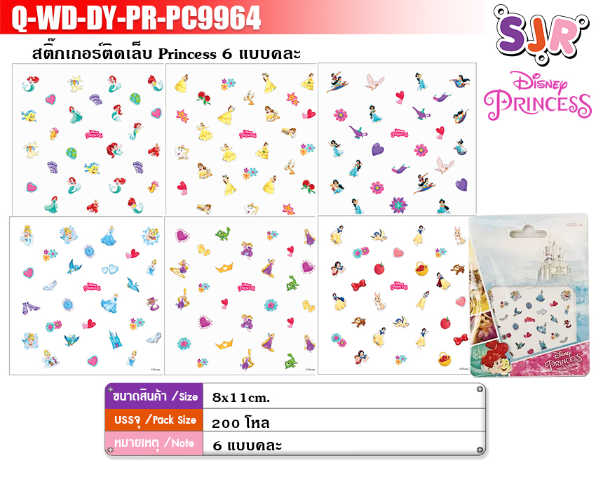 Disney Princess Nail Sticker 8x11 cm. 200 Doz. 6 Styles Asstd.